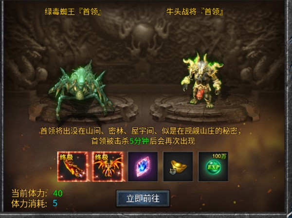 主线任务:跟随主线任务,前往指定地图击杀对应怪物。不仅能刷海量经验,还能刷取装备。