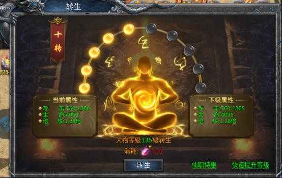转生系统 是传奇中常见的核心玩法,旨在通过突破等级上限、重置属性并赋予新能力,为玩家提供长线成长目标。转生通常要求玩家达到特定等级,并消耗材料或完成任务。